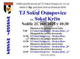 Přijměte pozvání na další domácí zápasy podzimní části. Tentokrát se na našem hřišti představí všechny družstva. Žactvo a dorost změří síly s vrstevníky z Drakenu, muži se utkájí v této sezóně s dosud suverénním Sokolem Krčín, který je pravidelným účastníkem PLAY-OFF v 1. lize. Dokáží naše týmy v domácím prostředí bodovat? To se dozvíme v neděli 21.9., začínáme v 9 hodin. Těšíme se na Vás! více